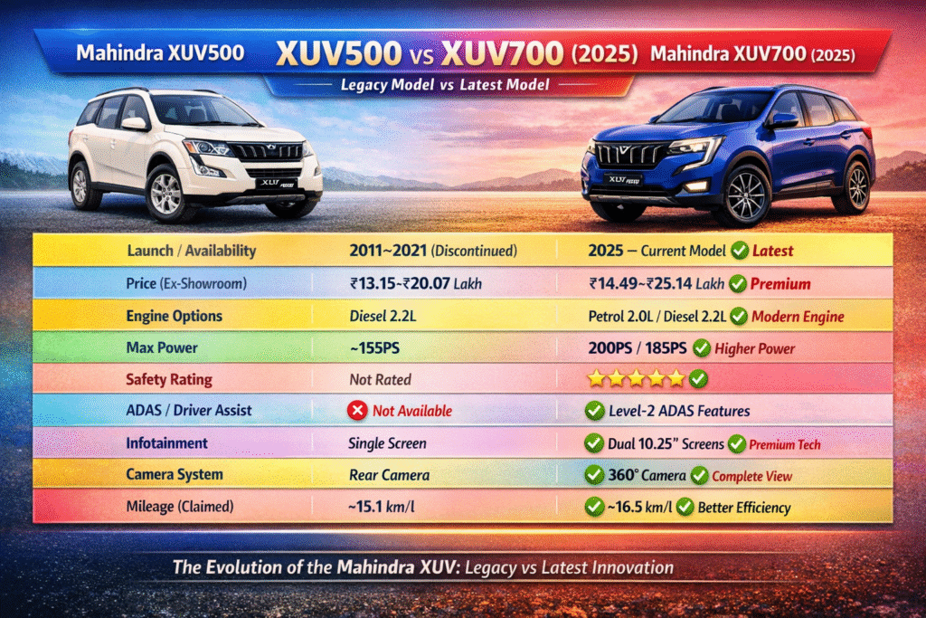 | Specification | Mahindra XUV500 | Mahindra XUV700 (2026) |