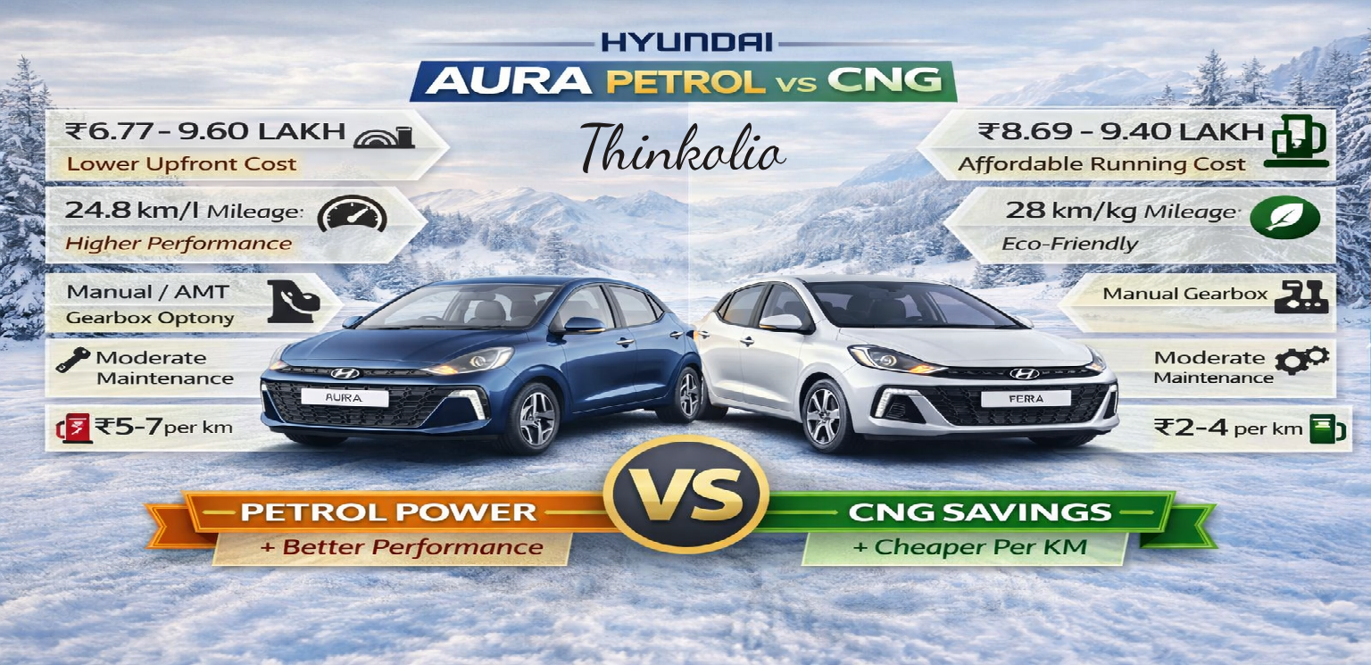 🚗 Hyundai Aura Petrol vs CNG – Detailed Comparison