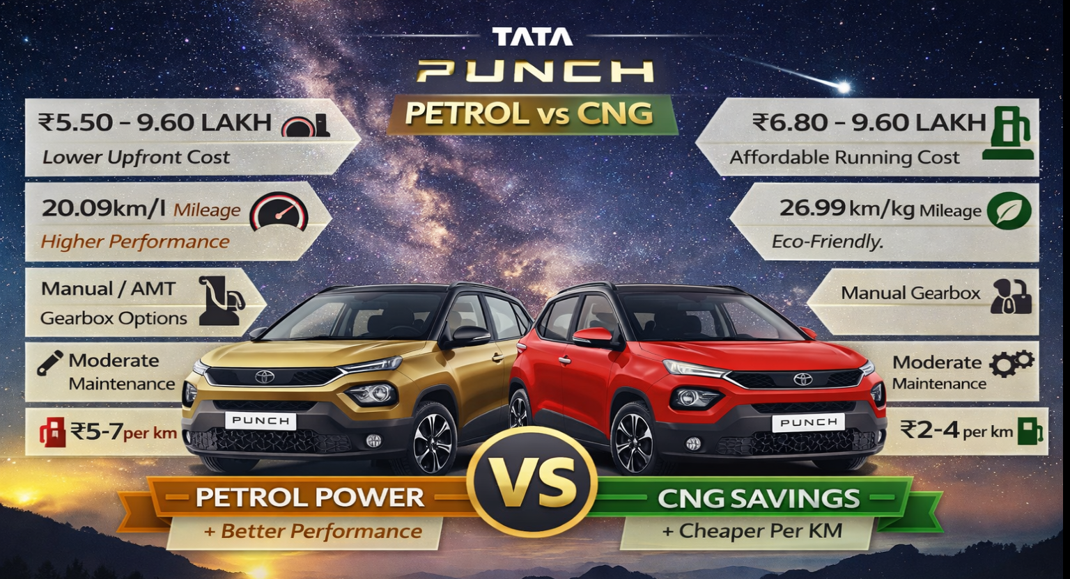 🚗 Tata Punch Petrol vs CNG – Full Comparison