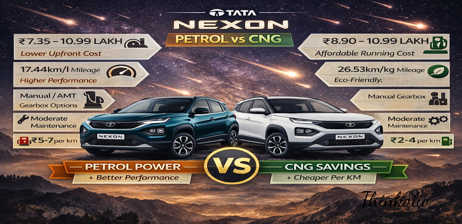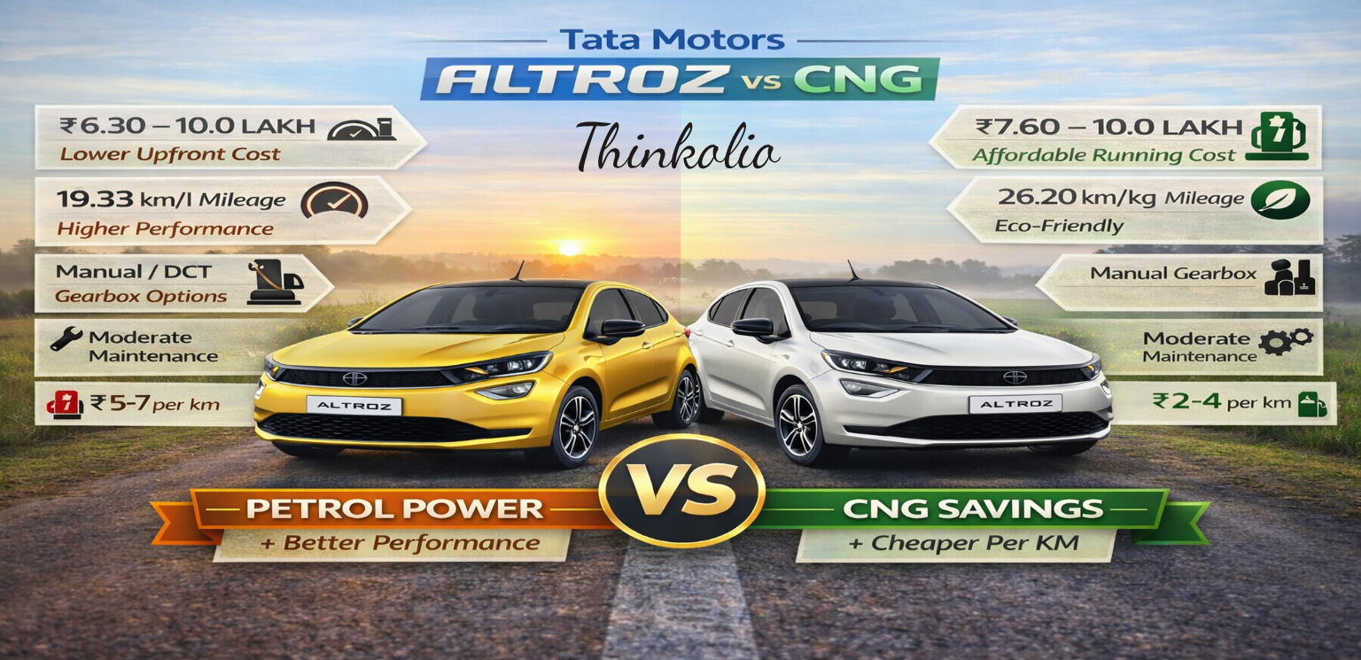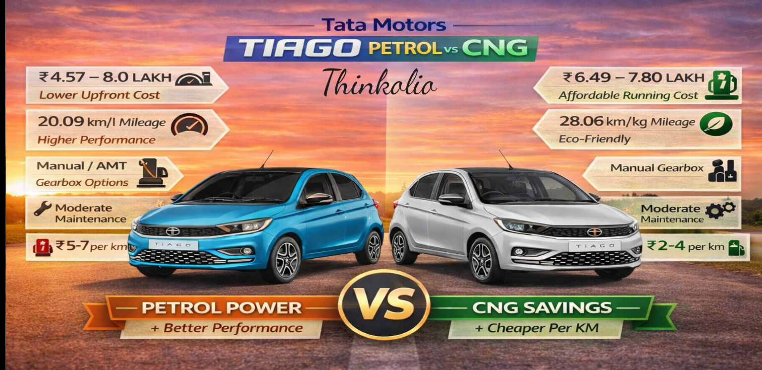 In this Thinkolio comparison guide, we analyse Petrol vs CNG based on mileage, fuel cost, performance, and ownership—helping you choose the right fuel for Indian roads.